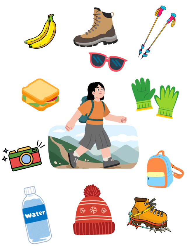 Regarding clothing, make sure you dress according to the current weather, and consider layered clothing. This way, if you get warm on the ascents, you can just take something off for a while. If you tend to be cold, make sure you cover your extremities well (warm socks, gloves, scarf, a beanie or a headband). If it looks like there is a chance of rain, it might be worth it to pack a raincoat – even one of those plastic bag types might be useful.